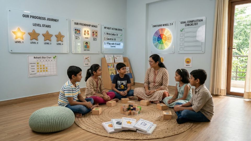 At Urjabodh, cognitive development is closely linked with emotional and behavioural functioning. The program incorporates strategies to support self-regulation, task persistence, and frustration tolerance, ensuring that cognitive gains translate into real-life situations.