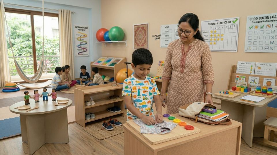 Each activity — whether it’s buttoning a shirt, balancing on a swing, or completing a puzzle — is a step toward functional independence.